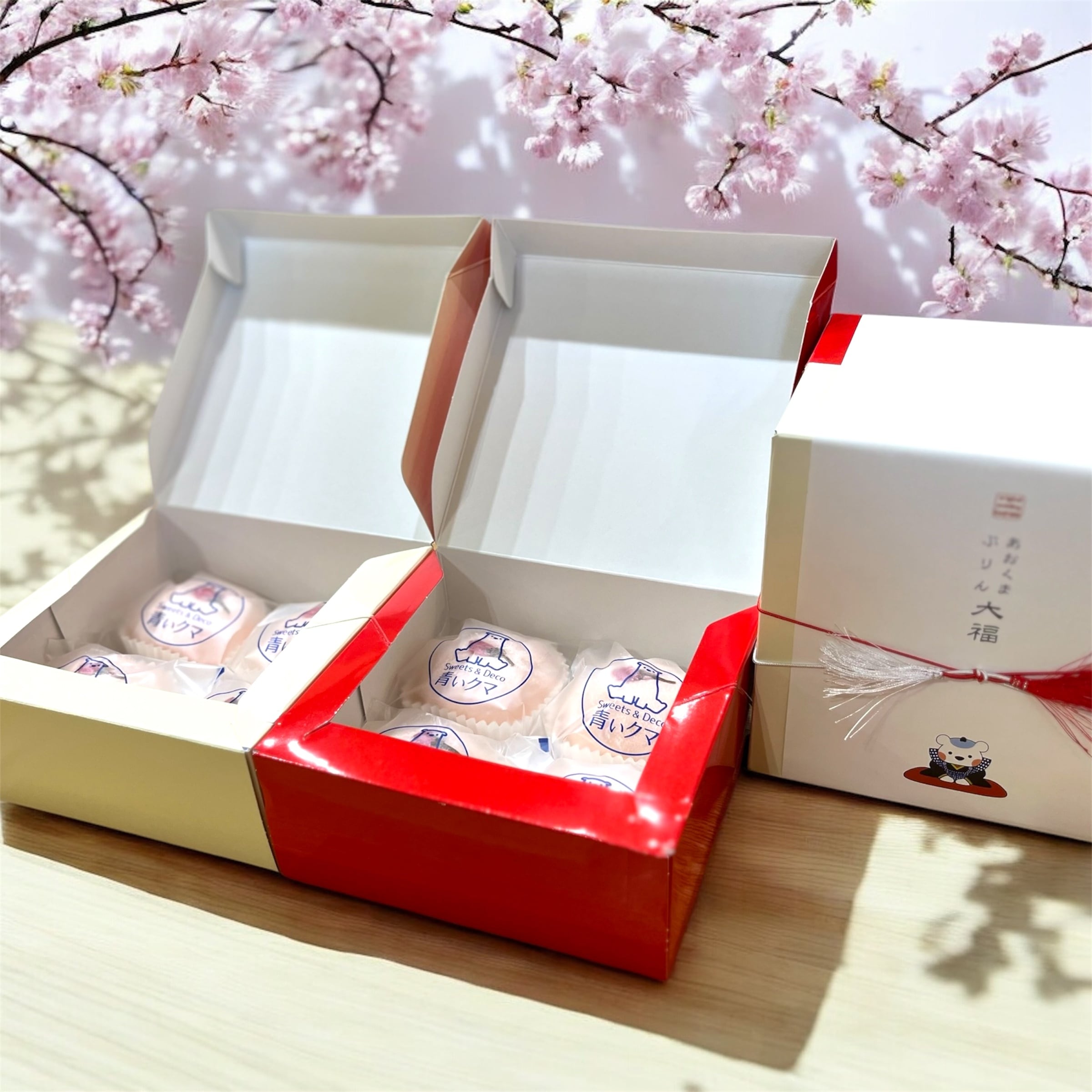 青いクマ人気のぷりん大福春限定商品です。