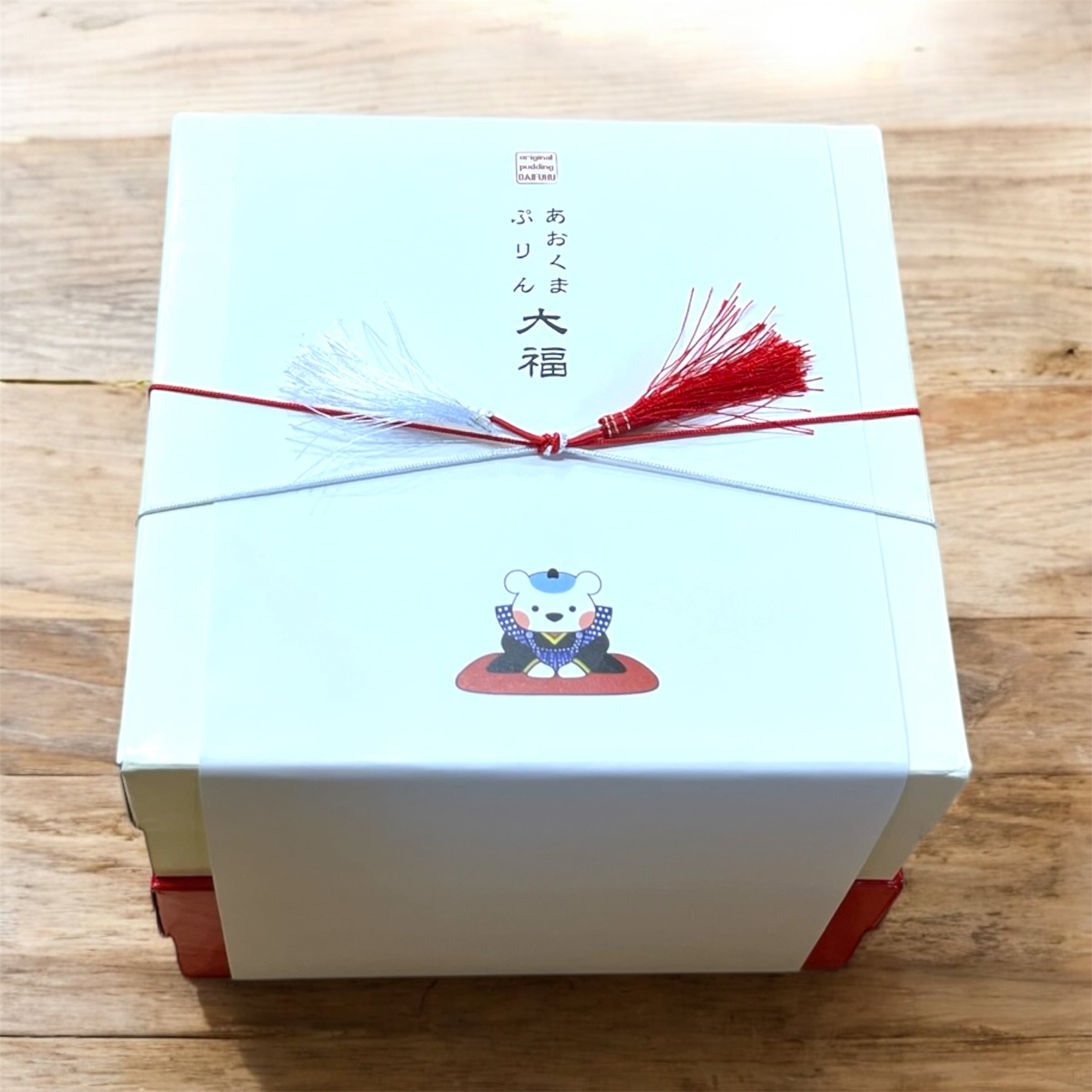 なお、包装熨斗紙をご希望の場合は、ぷりん大福ラッピングのゴム水引は熨斗紙の水引と被ってしまうため、付きませんことをご了承くださいませ。
