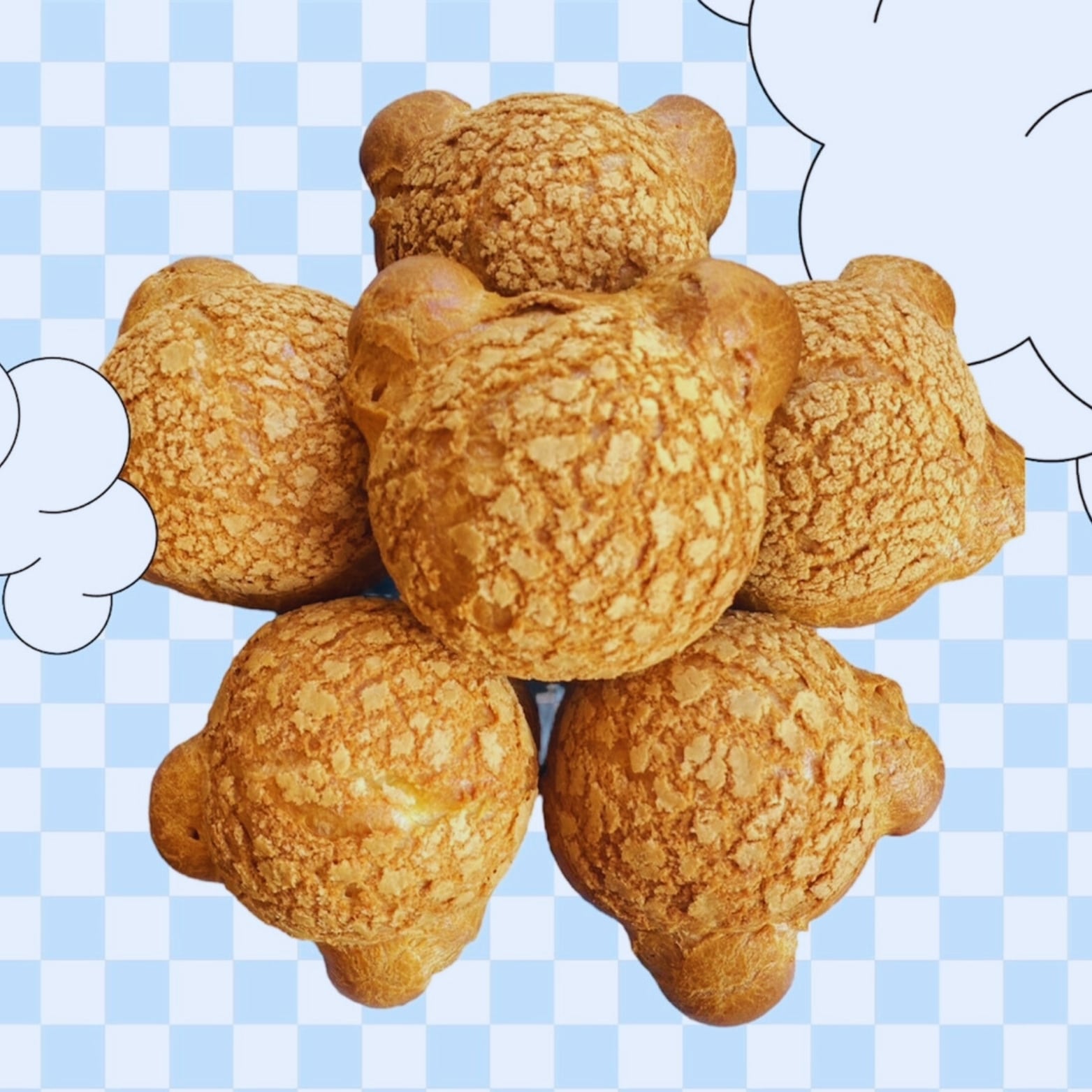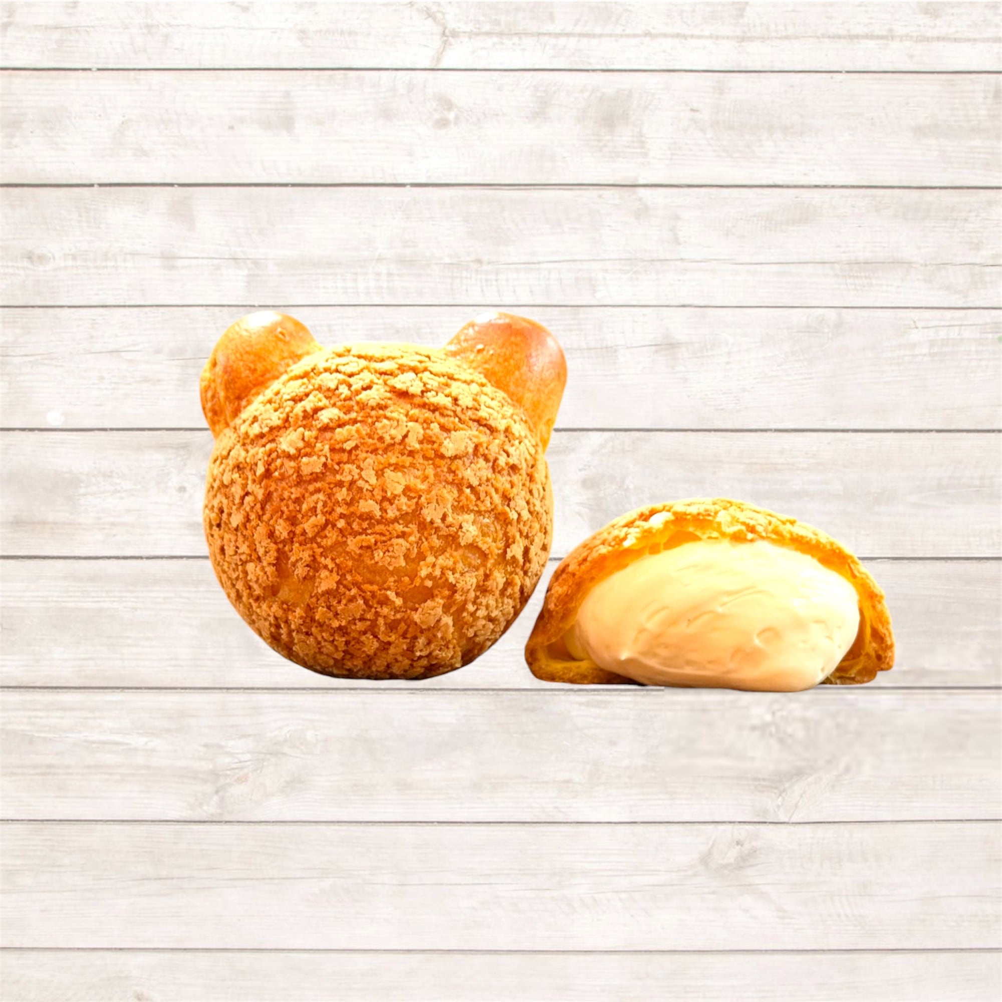 シュー生地にクッキー生地を乗せて強めに焼き上げることで表面はサクサク、下の部分はふわふわに仕上がっております。北海道産生クリームとなめらかなカスタードクリームを合わせたWクリームをたっぷり詰めてのお届けです。